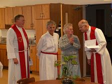 Sunday, May 7th, 2006, l to r: Pastor Gjerde, deacon Alida Ames, Dorothy Mathison, Pasto Engebretson |