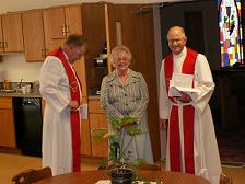 Pastors Gjerde and Engebretson with Dorothy Mathison SUnday, May 7th, 2006 |
