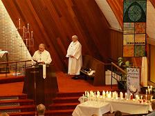 Bishop Omland of the Montana Synod reads the gospel on All Saints' Nov. 2006; Pastor Avis in the back. |